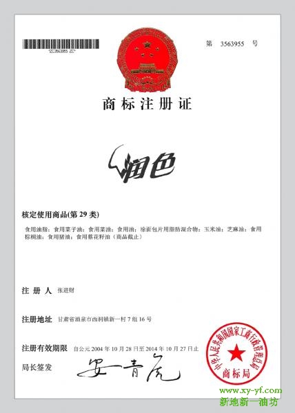 详细介绍:“润色”商标注册证书